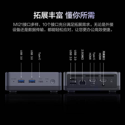这款主机支持4屏4K显示,视觉体验极佳,丰富的接口设计让用户在使用时更方便快捷。无论是视频会议还是多任务处理,MI21都能轻松应对。