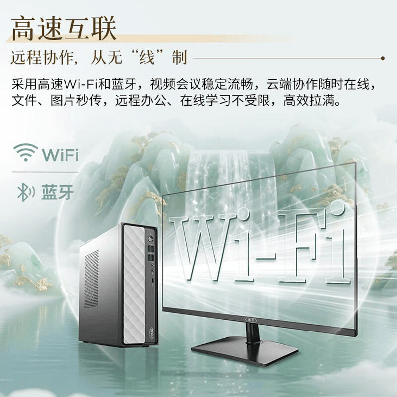 内部散热设计也很周到,双路散热风道设计,加上涡轮风扇和电源风扇辅助,能快速将热量排出,保证系统稳定运行。此外,它还支持Wi-Fi 6E无线网络,网速更快,部署更方便。整机立卧摆放都行,怎么方便怎么来!